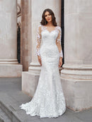 Trumpet/Mermaid Tulle Applique Scoop Long Sleeves Sweep/Brush Train Wedding Dresses