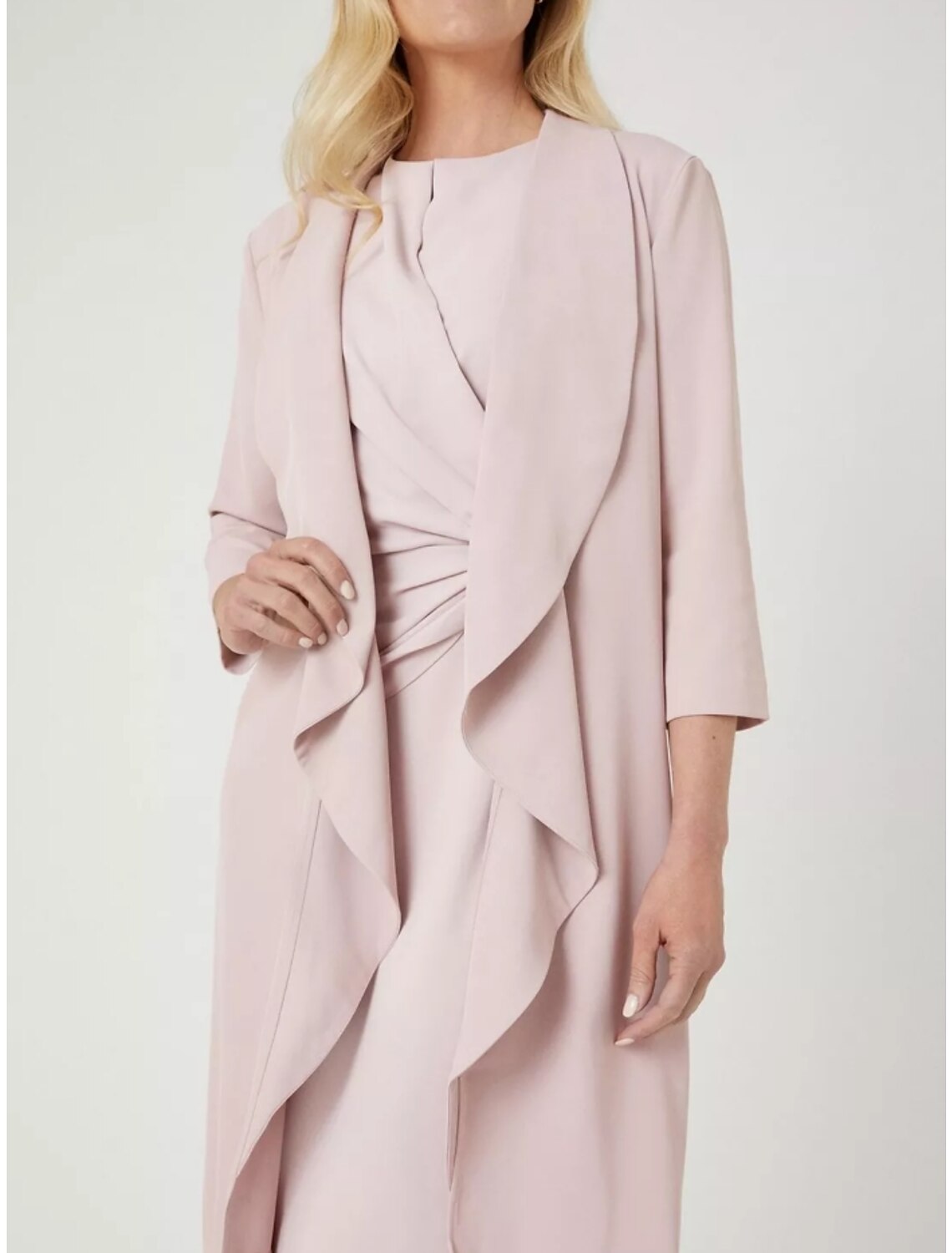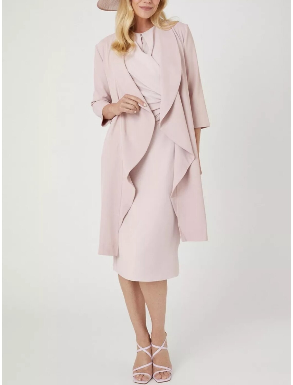 Two Piece Mother of the Bride Dress Wedding Guest Elegant Petite Jewel Neck Knee Length Stretch Chiffon 3/4 Length Sleeve with Split Front Ruching Solid Color