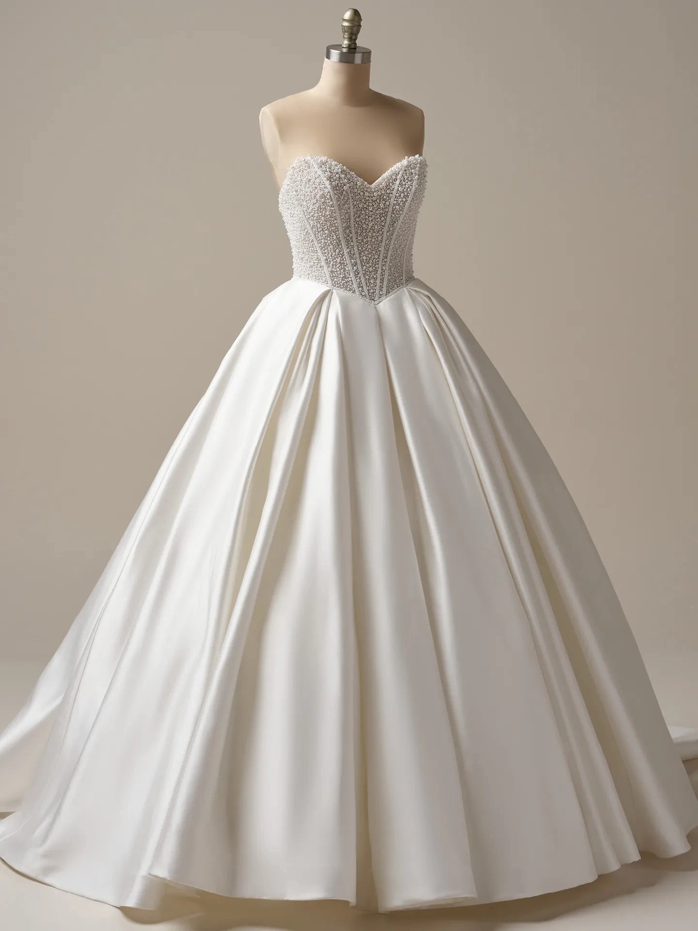 Wedding Dress A-Line V-Neck Strapless Sweetheart Neckline Off-the-Shoulder Sleeveless Beaded Gorgeous Bridal Gown Formal Wear Dress