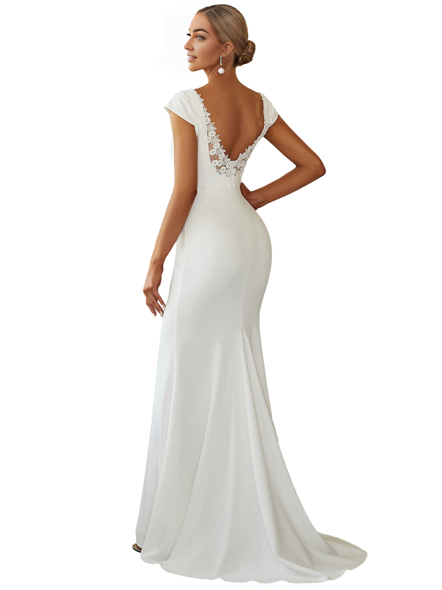 Wedding Dress Deep V-Neck Open Back Lace Bodycon Mermaid Maxi Wedding Dress Formal Women's Dresses