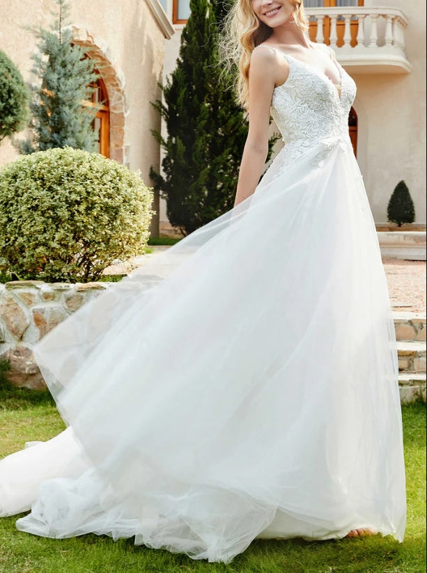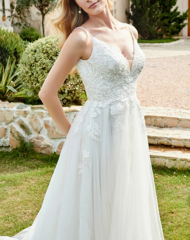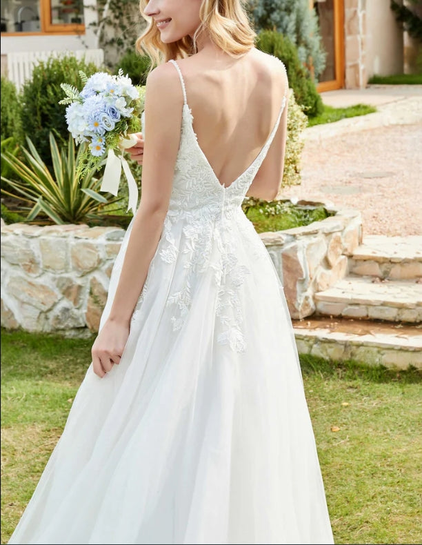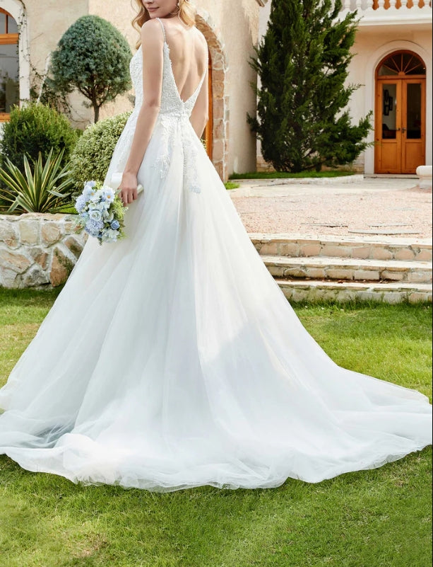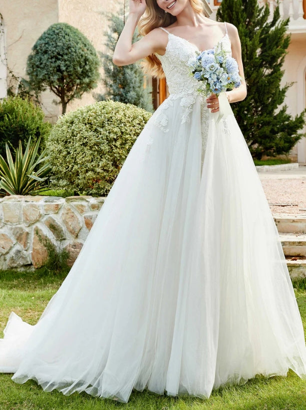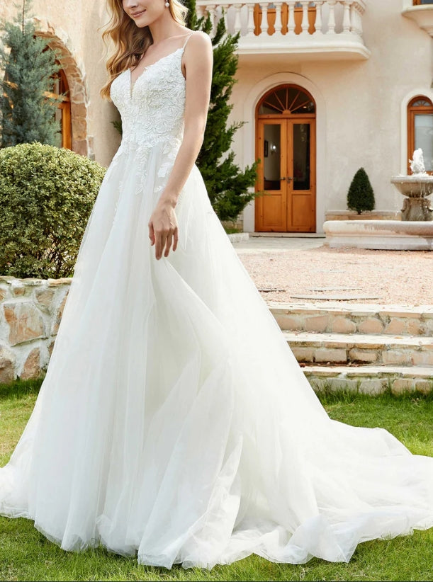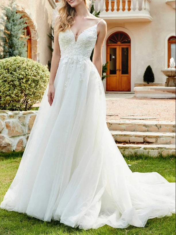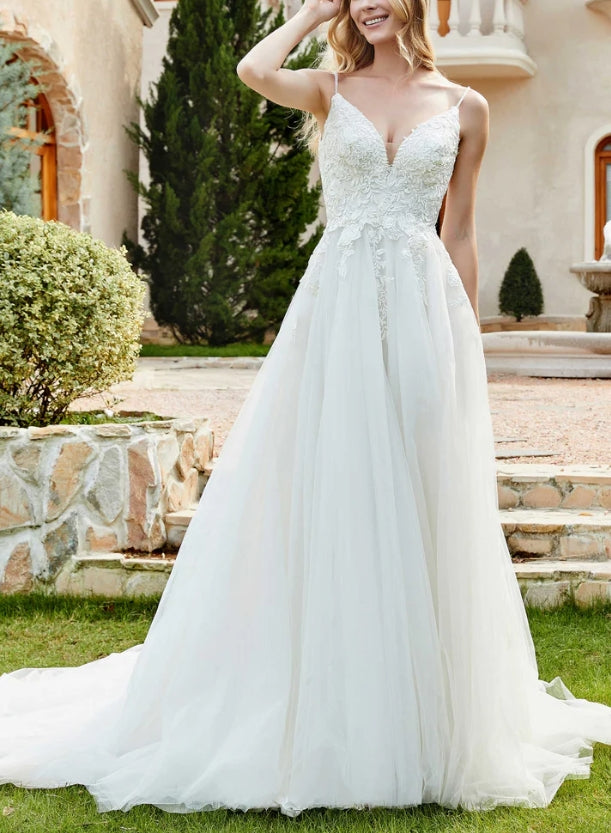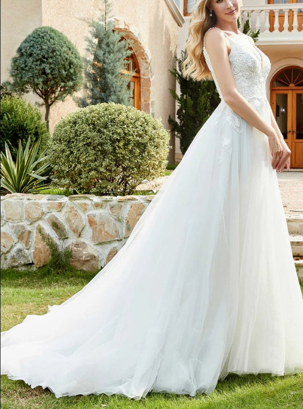 Wedding Dress New Pattern Spaghetti Straps Chapel Train Fall November December Wedding