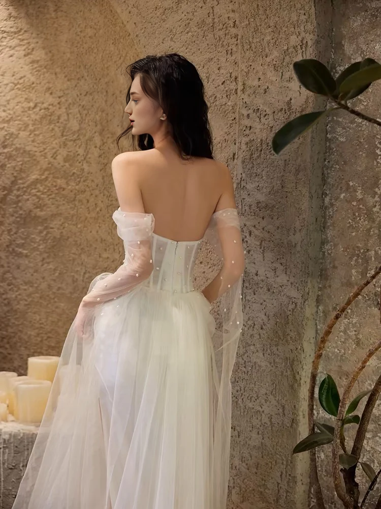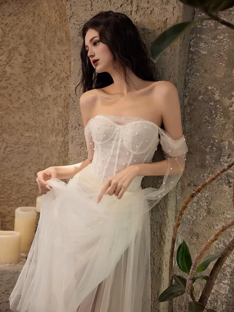Wedding Dress Off The Shoulder A Line Beaded Tulle Luxury Formal Dresses