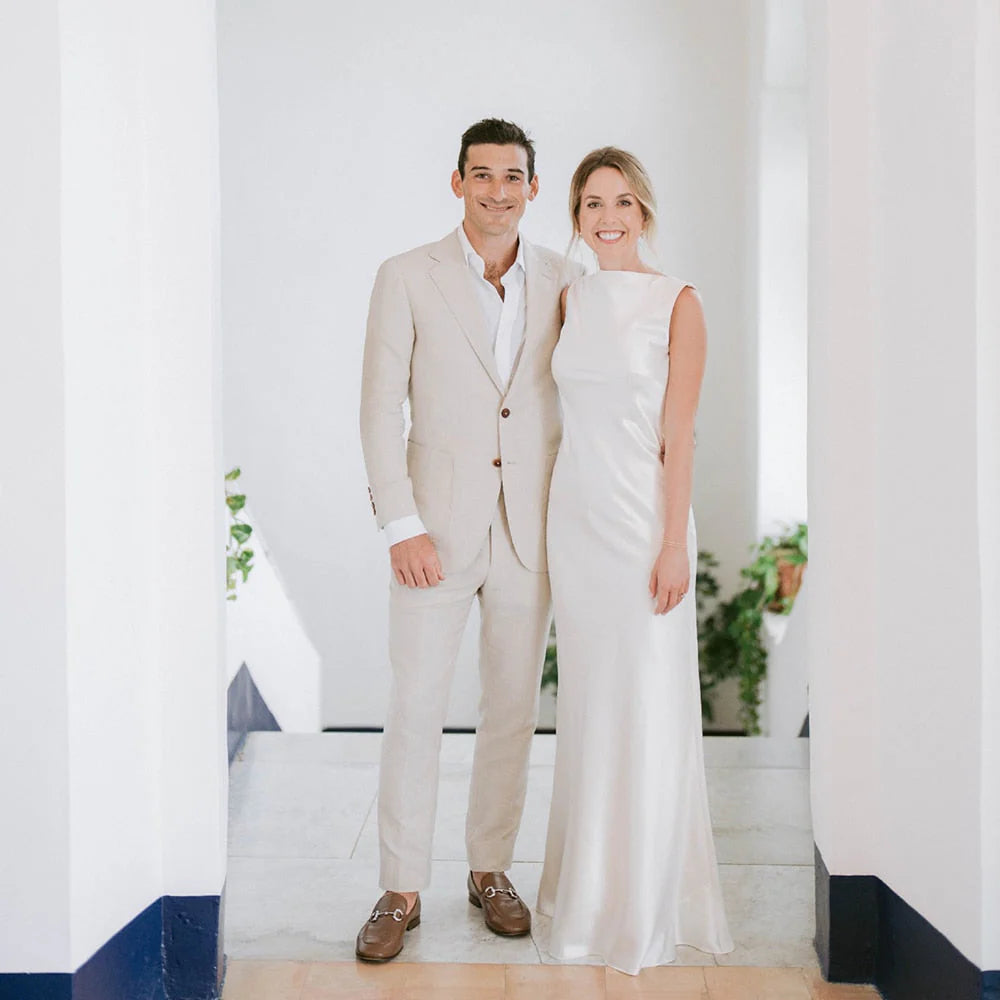 Wedding Dress Sheath High Cowl Neck Backless Silk Satin