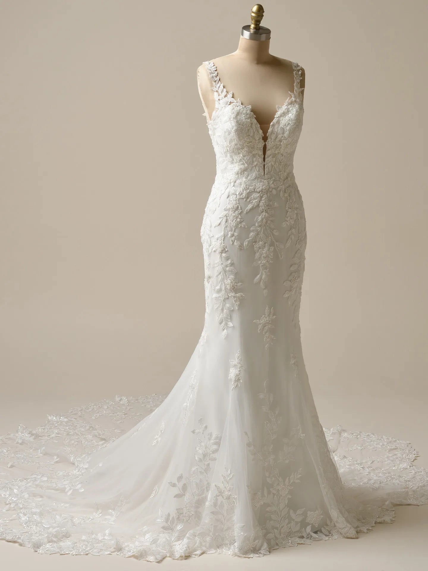 Wedding Dress V-Neck Sleeveless Mermaid Sheath Beaded Floral Lace Satin Sparkle Backless Bridal Gown Formal Wear Dress