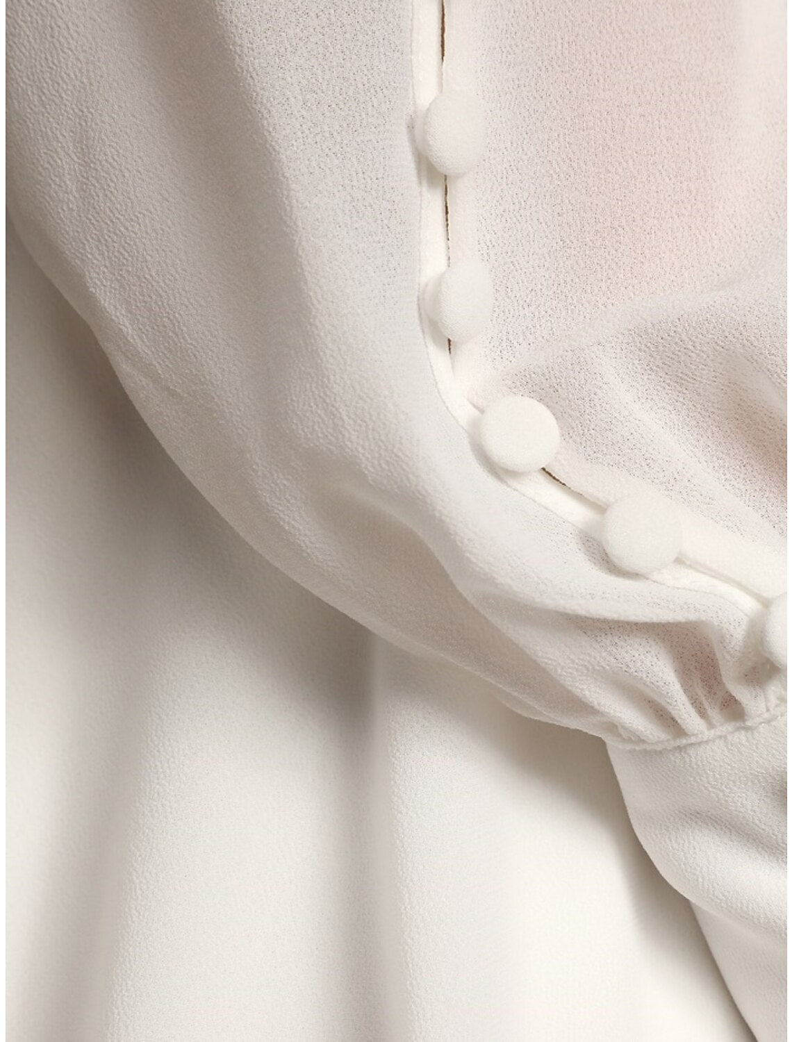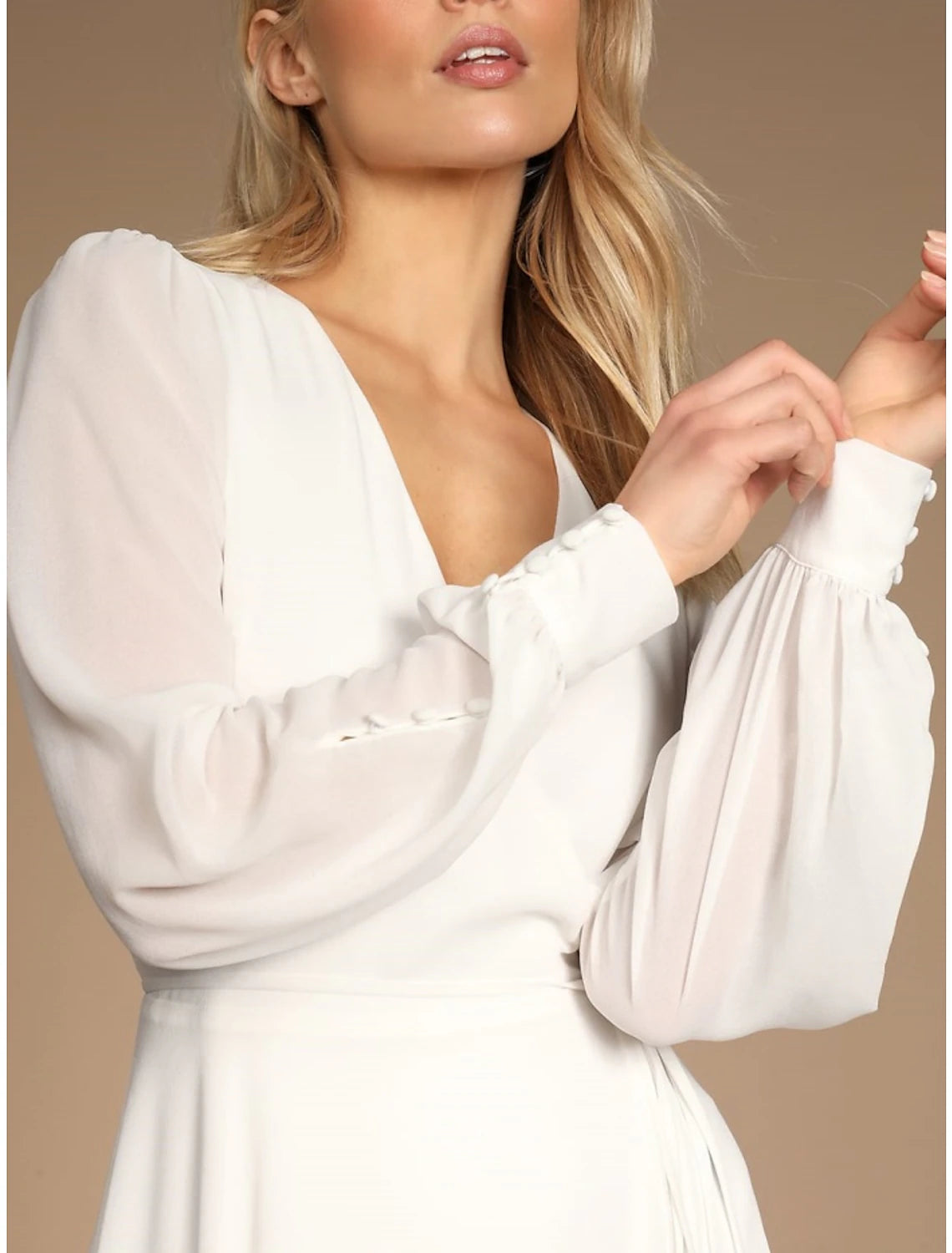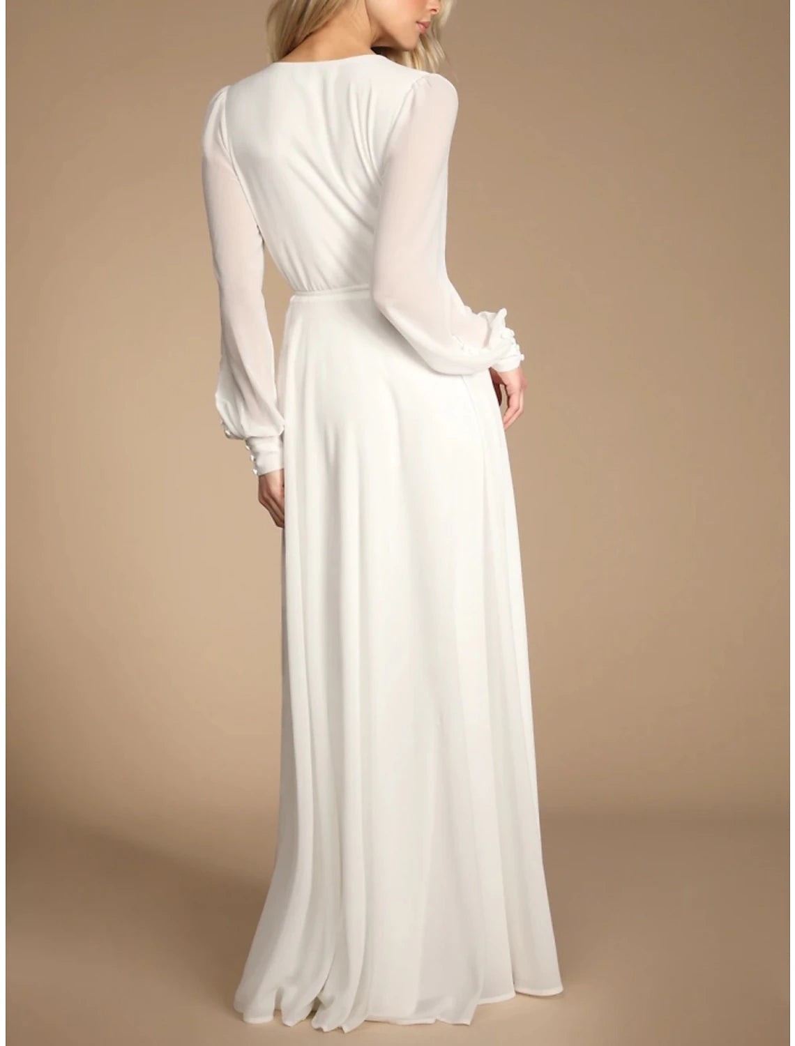 Wedding Dresses A-Line V Neck Long Sleeve Floor Length Chiffon Bridal Gowns With Pleats Split Front