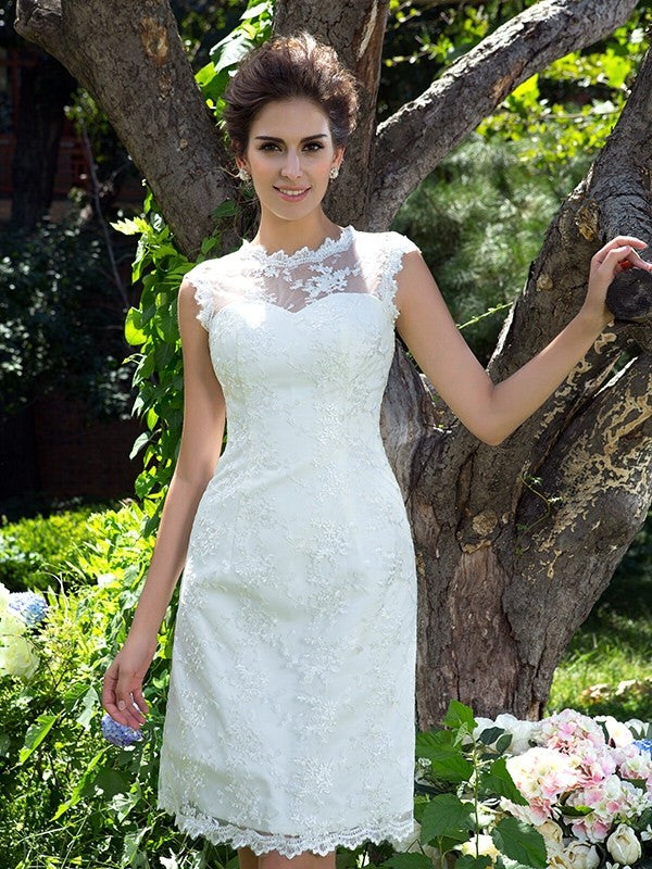 Wedding Dresses Princess Sheer Neck Applique Sleeveless Short Satin