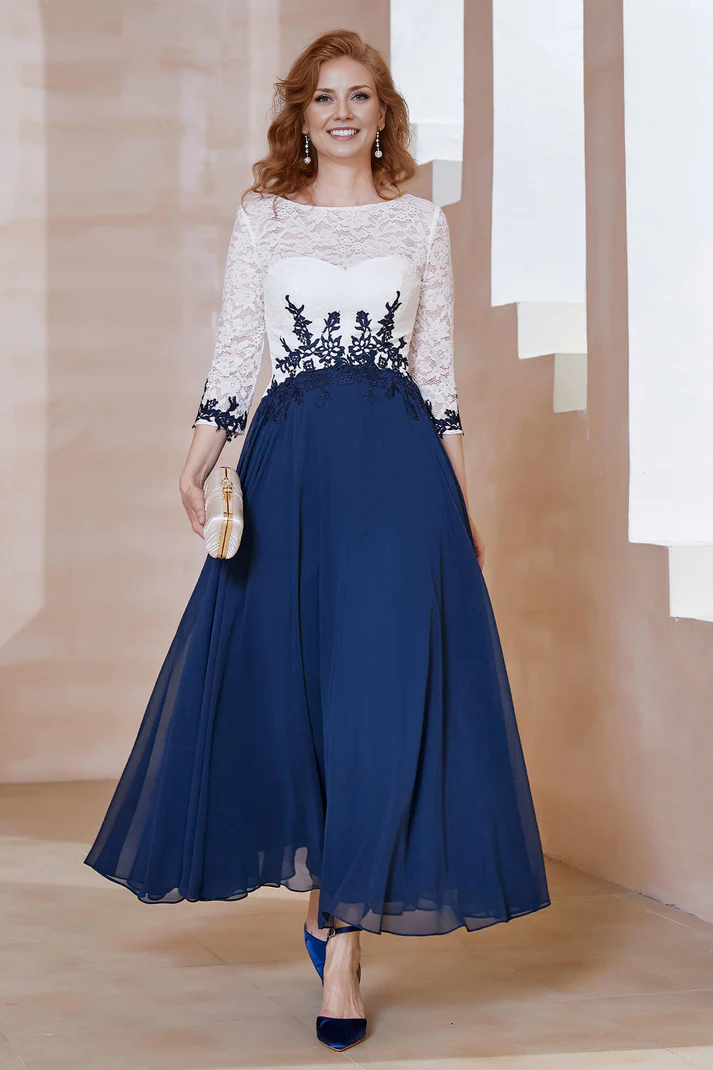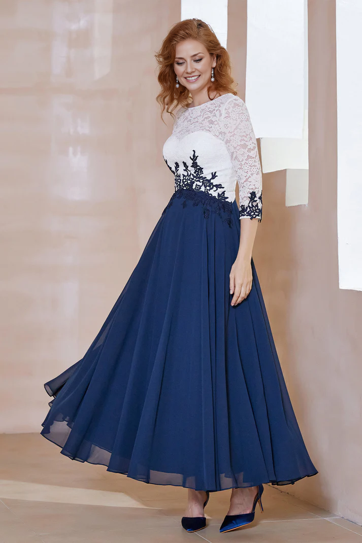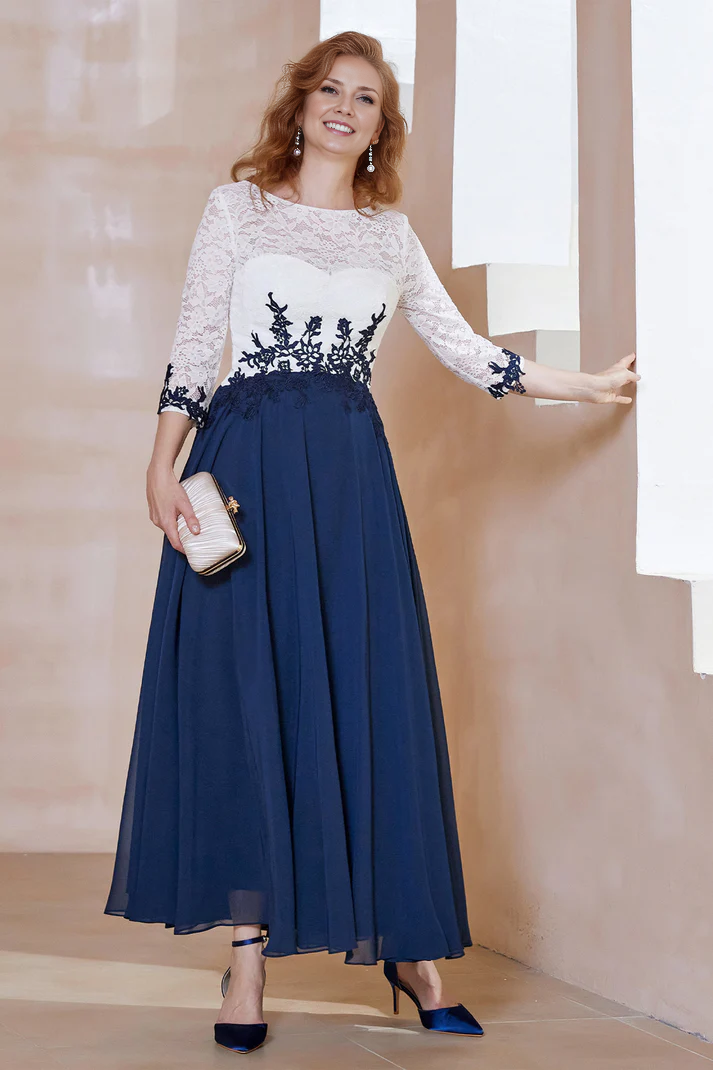 Wedding Guest Dress Round Neck Lace Chiffon Tea-Length Mother of the Bride Dress