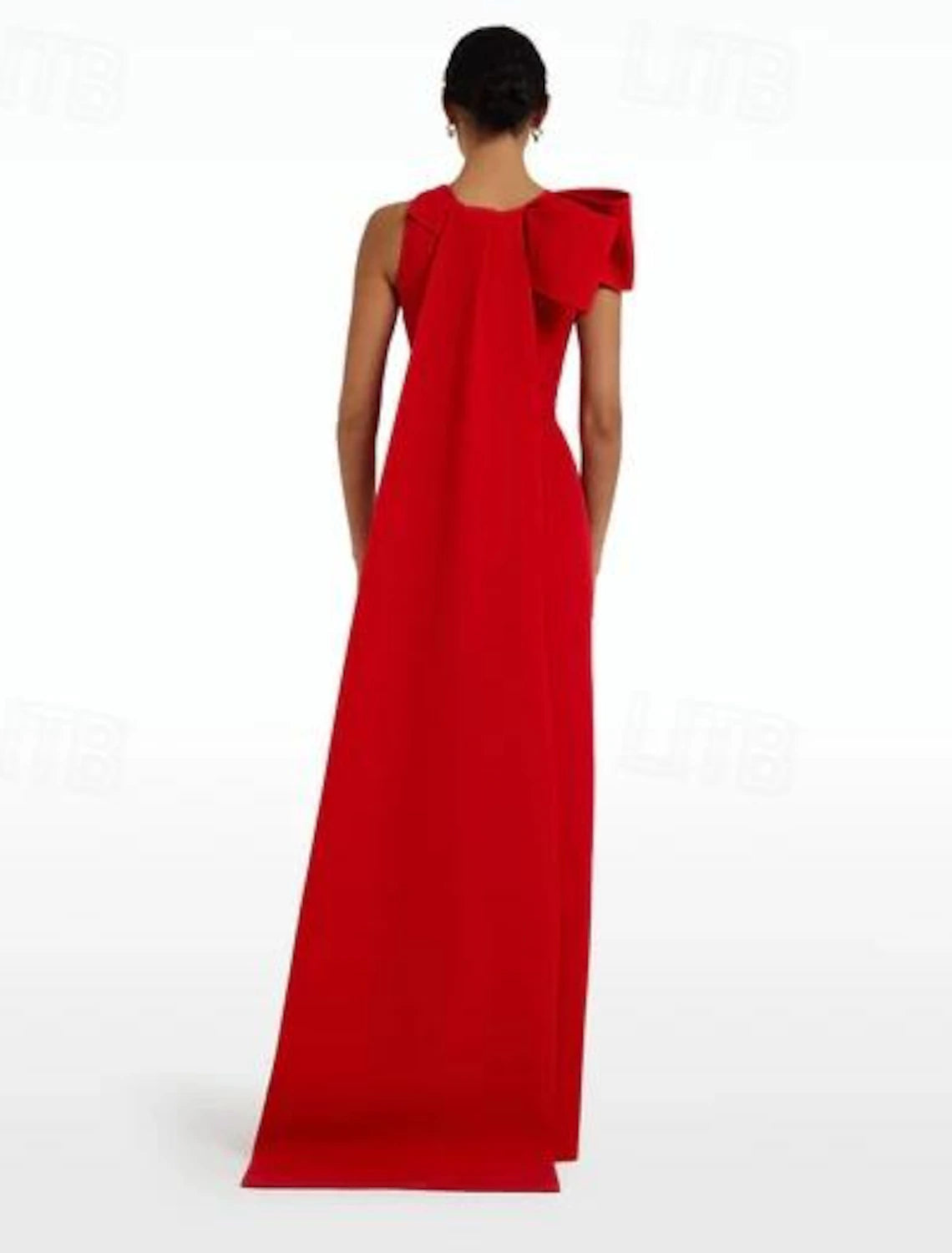 Wedding Guest Dress Sleeveless Elegant Dress Bow Tie Dress Formal Floor Length Jewel Neck Stretch Fabric Evening Dresses