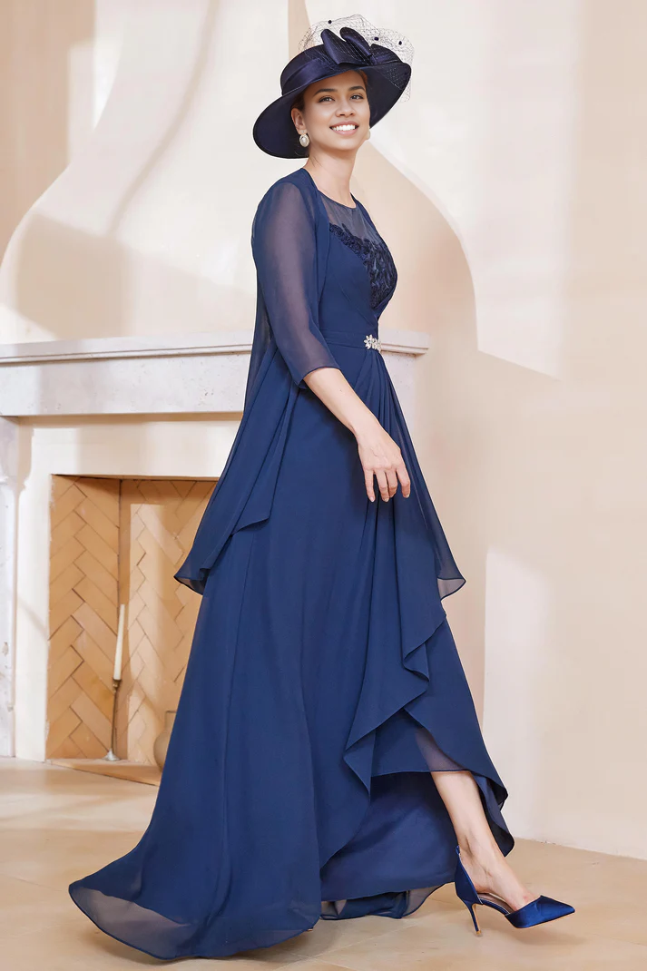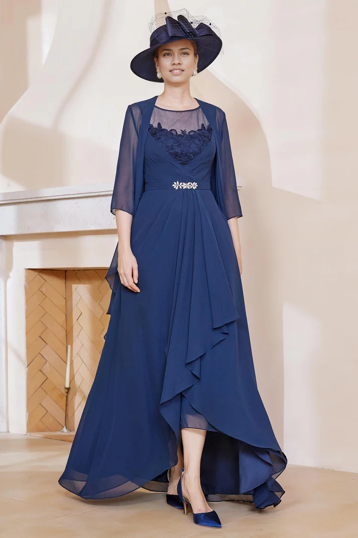 Wedding Guest Dresses A-Line Lace Chiffon Dress with Jacket Formal Dress Mother of the Bride Dress