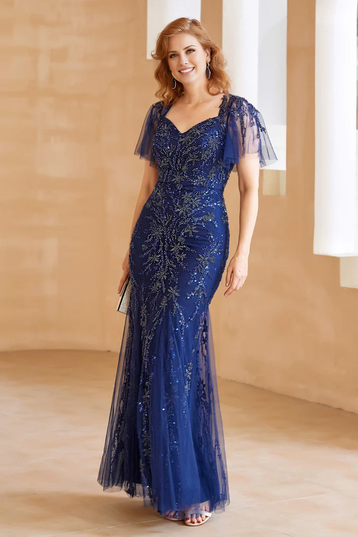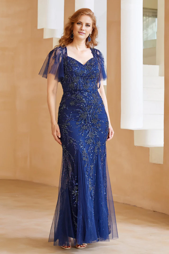 Wedding Guest Dresses Heart-shaped collar Rear fork Beaded Flutter Sleeves Tulle Gown Mother of the Bride Dress